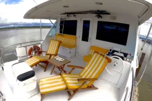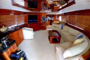One Net is a purpose built sport fishing machine, with a huge cockpit and plus-sized fighting chair. The highly experienced crew will put you on the fish! There is also a complete dive center, for the snorkel and SCUBA enthusiast. One Net is also very much a luxury yacht, with rich wood finished interior and marble baths, and a experienced crew and chef, ready to help make your stay completely care free. The owner’s traditional ‘welcome aboard’ champagne sets the tone for being pampered and having fun!