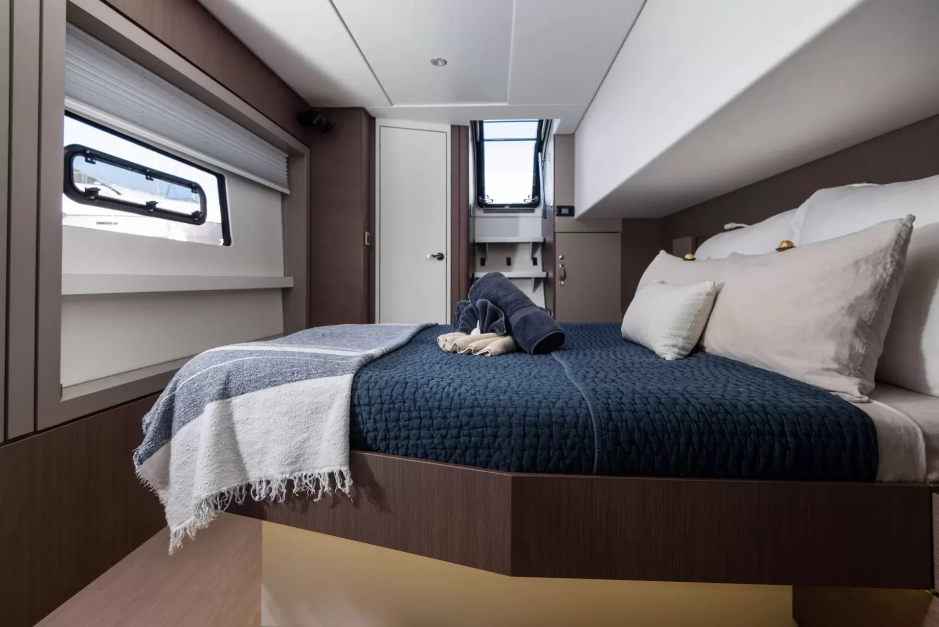 Oceana’s soft-foam decking, flybridge, and lithium batteries with solar panels provide a quiet, eco-friendly environment where air conditioning runs silently without the generator. The yacht features a water maker, ice maker, full-sized refrigerator, fully customizable menu, and a stocked bar, ensuring every guest’s preferences are catered to. Eco-conscious amenities include reef-safe toiletries, allowing you to enjoy the islands responsibly.